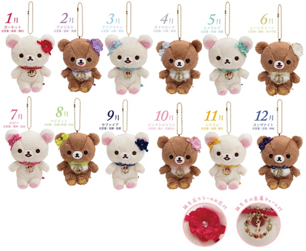 ■誕生石カラー ぶらさげぬいぐるみ 12種 各1,580円(税抜)