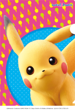 大人気のピカチュウがモチーフのアイスが登場!ピカチュウカラーの黄色のソルべは、 パイナップル、 イエローピーチ、 バナナ、 アップル、 オレンジのフルーツミックス味。 そこに、 ピカチュウの真っ赤なほっぺをイメージした弾けるポップロックキャンディをIN。 さらに表情までこだわったピカチュウ型のお菓子を散りばめたら、 サーティワン史上初のピカチュウフレーバーの完成!