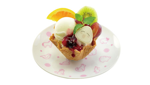 コラボレーションカフェでは、猫ステッカーが当たるあみだくじがついた“あみだチャレンジ!秘密基地のニラを使ったおにぎりプレート”や、もりだくさんのフルーツとヨーグルト風アイスに、おにぎりのプリントもなかを添えた“オニギリ入り フルーツバスケット”など、アニメの1シーンを思い出すようなコラボメニューの数々が登場。