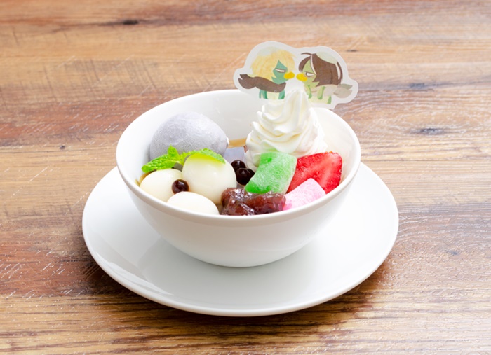 作品の舞台である“浅草”でよく出てくるあんみつを、玲央と真武のカラーであるモノトーンカラーで仕上げた。