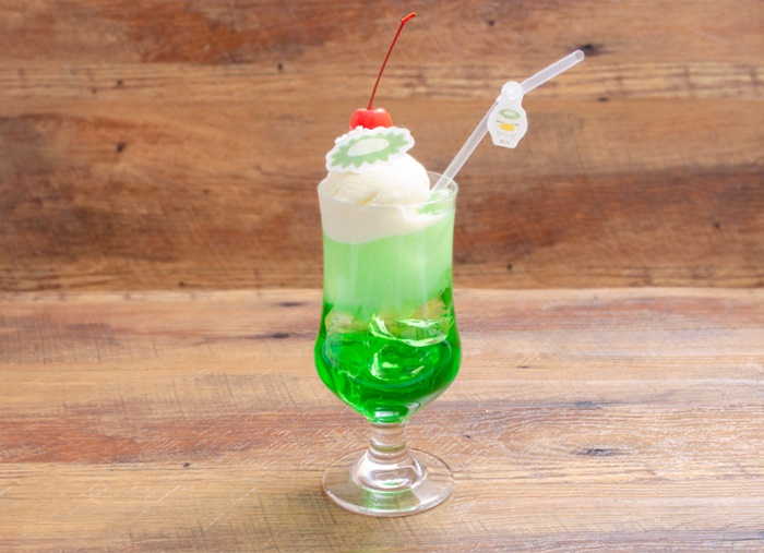 喫茶店の定番メニューであるクリームソーダ。ケッピのイラストがストーロータグに描かれている。