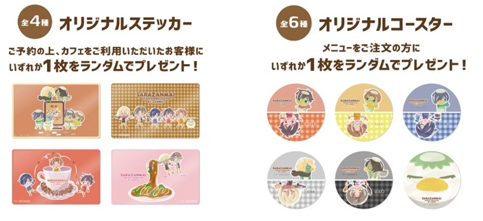 事前予約者限定カフェ利用特典:オリジナルステッカー(全4種)、メニュー注文特典:オリジナルコースター(全6種)