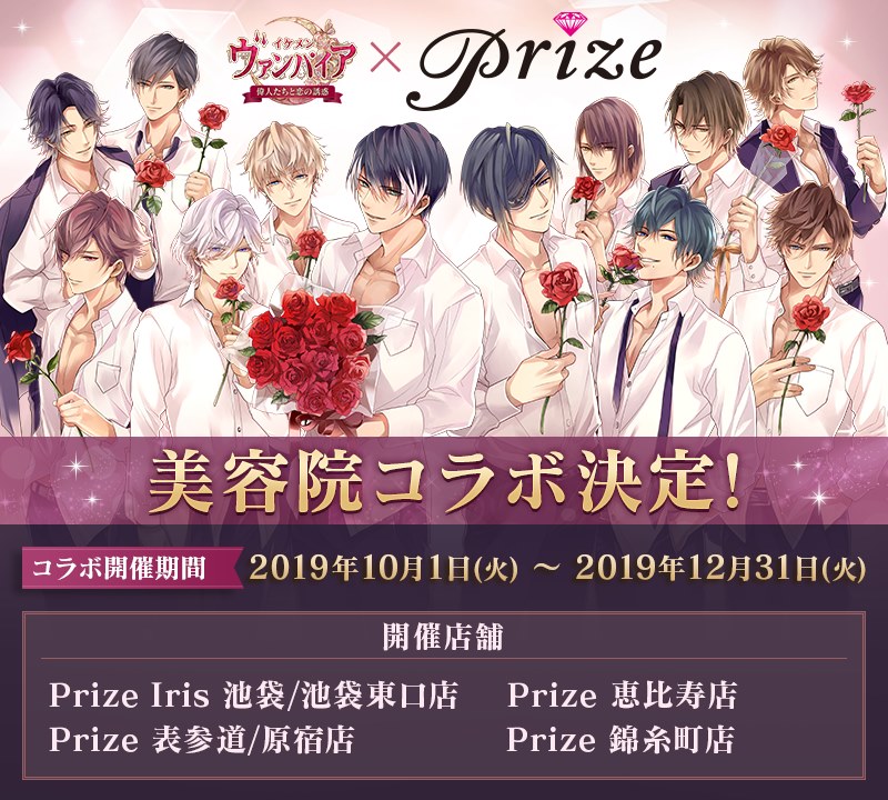 『イケメンヴァンパイア◆偉人たちと恋の誘惑』は、サービス開始2周年を記念した最後の取り組みとして、イケメンシリーズ初となる美容院コラボを、実力派美容院『Prize (プライズ)』と10月1日(火)より開催。