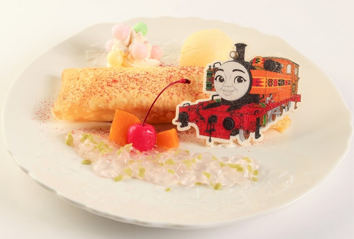 青いボディのがんばりや“トーマス”や、力持ちで急行列車を引いているのが自慢の“ゴードン”、ソドー島のパトロールが仕事の“ハロルド”、新しい仲間のおんなのこきかんしゃ“ニア”などをモチーフにしたフードやデザートが登場。また、カフェ内ではフォトスポットを設置、グッズ販売もされる。
