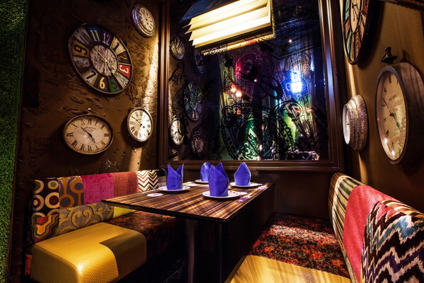 ハチャメチャな時を刻む時計に囲まれるポップなボックス席。“時間を忘れて”非日常感を味わいたい、そんな時にこそおススメ。