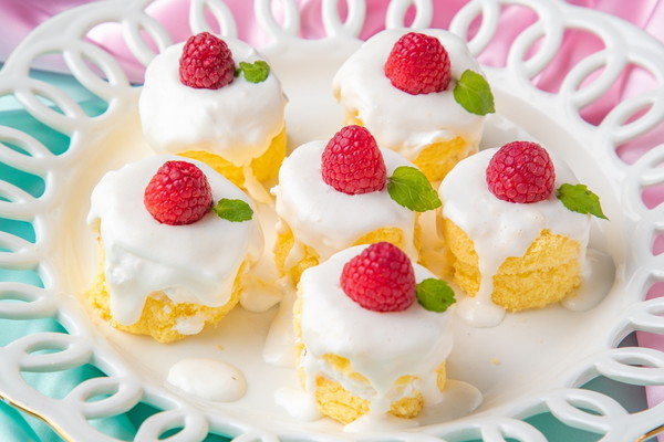 王道のショートケーキは、ビュッフェらしくプチサイズに。ふわふわのスポンジに真っ白な生クリーム、その上にラズベリーを置いたその姿は、小さくても映え具合は堂々たる王者の風格。バリエーション豊富なさまざまなデザートを取り分けたお皿の一角に、必ず飾っておきたくなる一品だ。