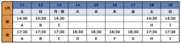 A 1月11日(土)男A:中島ヨシキ 男B:植木慎英/女A:山下七海 女B:田中あいみ 男C:神尾晋一郎