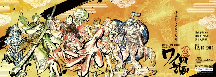 TVアニメ『ワンピース』20周年を記念して、渋谷の街回遊型デジタル連動イベント“渋谷「ワノ国」計画~仲間を集めて四皇カイドウと渋谷大決戦!~”が2019年12月1日(日)~29日(日)の期間、実施される。