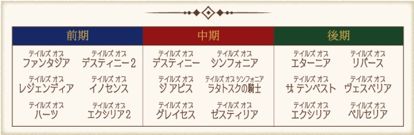期間ごとに『テイルズ オブ』シリーズの家庭用ゲームの中から18作品それぞれをイメージしたオリジナルドリンク(全18種)や、スマートフォンアプリの中から3作品をイメージしたオリジナルフード(全5種)が登場し、注文するとノベルティとしてクリアコースターやメッセージ付きフォトカードがもらえる。