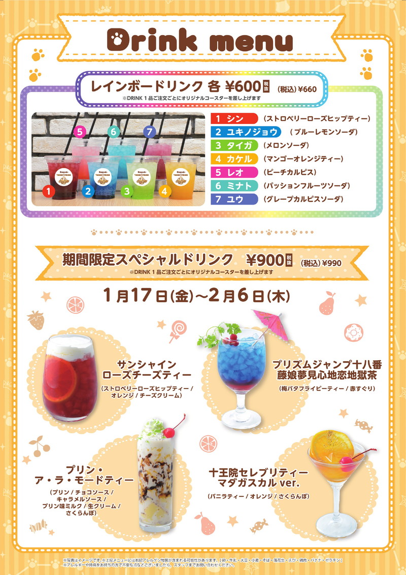 <AMO CAFE 原宿店 コラボメニュー一覧>