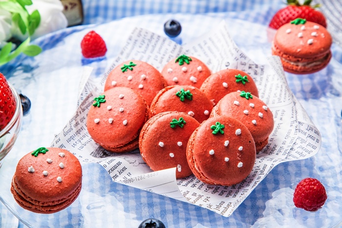 表面のいちご模様がとってもキュートなピンク色のマカロン。見た目だけでなく、お味もしっかりいちご味。一つ添えるだけで、取り分けたお皿がたちまち“いちごジェニック”に大変身!いちご好きは素通りできないはずのスイーツにつき、ビュッフェ台からたちまち消えてしまうこと必至です。