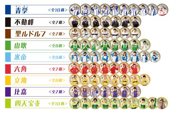 ■トレーディングアクリルマグネット(全73種/好きな学校を選んでのランダム/1個500円)