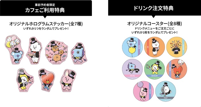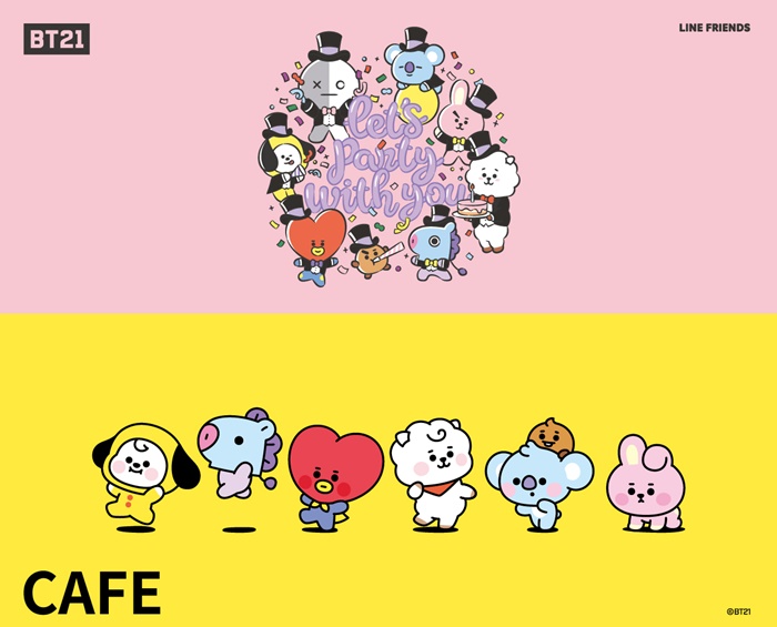 その他、東京、大阪の3店舗において、“Lets Party With You”と“BABY”のアートを使用したカフェオリジナル商品や特典などを設け“BT21カフェ”第6弾を盛り上げる。