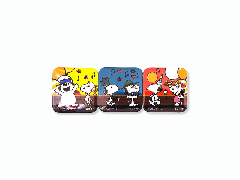 2月26日より、“SCRAP×SNOOPY 謎解きPROJECT”オリジナルグッズを合計3,000円(税込)以上購入すると、謎付きメッセージカードが付属したスクエア缶バッジがもらえる。