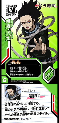カプセル景品は、キャラクターのイラストが入ったバトル消しゴム(全13種)。そしてカプセルに当たり券が入っているともらえる金賞は、好評発売中のニンテンドー3DSソフト『僕のヒーローアカデミア バトル・フォー・オール』と、このキャンペーンのための描き下ろしイラストを使用した、くら寿司オリジナルメタリッククリアファイルのセット(計370名)。また銀賞は、同イラストを使用したくら寿司オリジナルクリアファイル(10,000名)。
