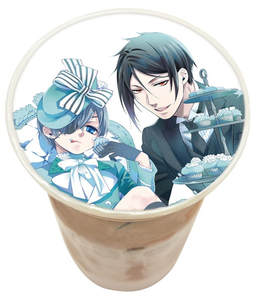 さらに第三弾として、1月29日から3月21日まで、「『黒執事』×グラッテ 第一弾」を開催。ドリンクの上のクリームにキャラクターをプリントした“グラフィックラテ”通称「グラッテ」やアイシングクッキーを販売。注文すると、【コースター(全10種)】がランダムで1枚プレゼントされる。
