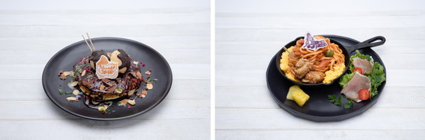 コラボカフェメニューは、全店共通通期メニューとしてグランドメニューが展開されるほか、店舗限定メニューも展開。それぞれ各ディビジョンや作品の世界観をイメージしたメニューをフードもしくはデザートで用意される。さらに、バースデーメニューの展開。誕生日が会期に重なるキャラクターについて、期間限定でバースデーメニューが用意される。その他、キャラクターカラ―をイメージしたドリンクなども登場する。