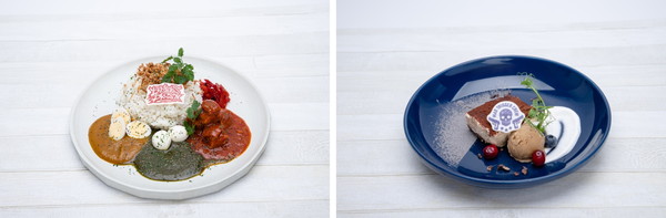 3色のカレーは、辛口のレッドカレー、中辛のサグカレー、甘口のイエローカレーの3種。ディビジョンロゴのモナカ付き。レッドカレーは辛いので苦手な方はお気を付けを。