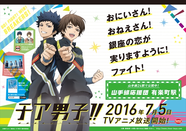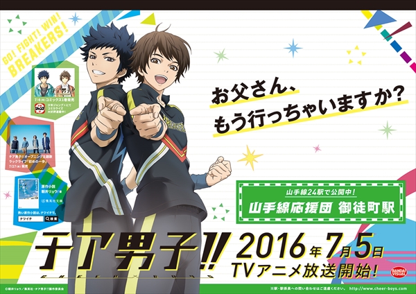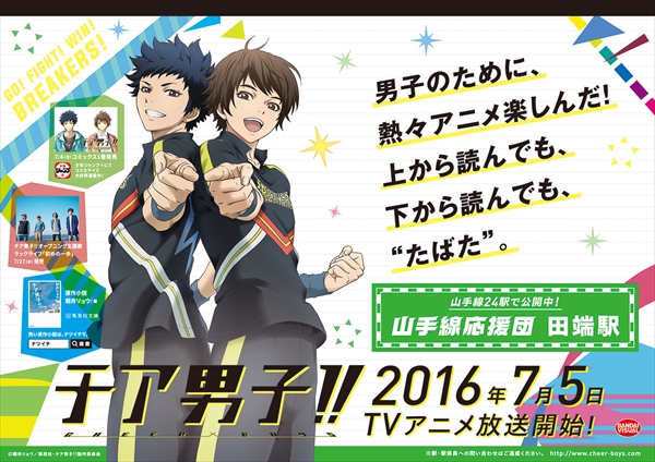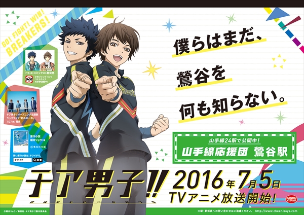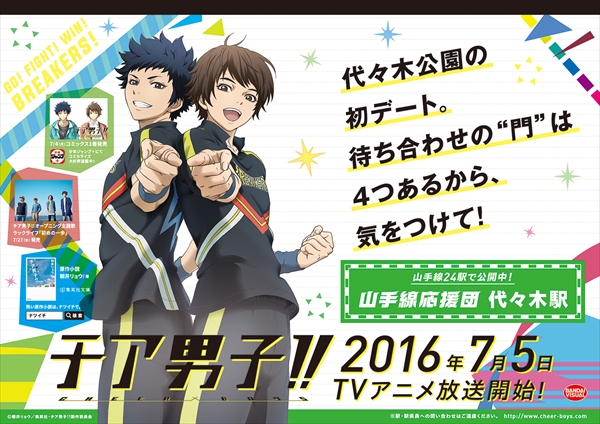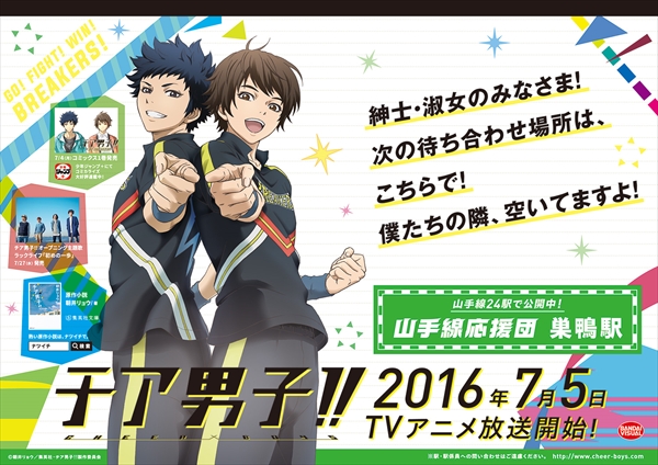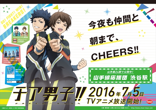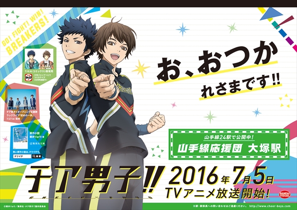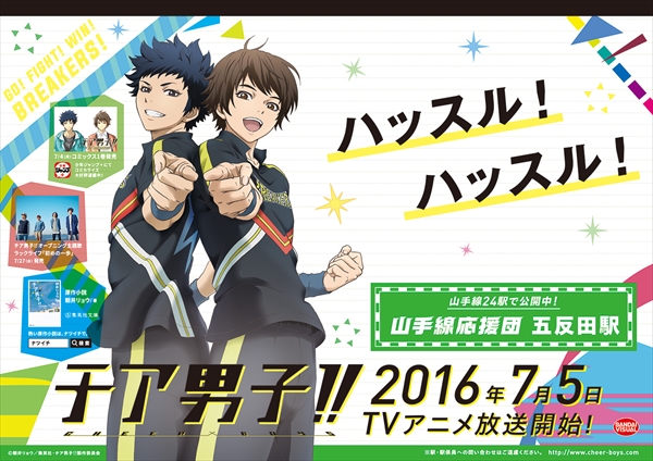 TVアニメ『チア男子!!』が、2016年6月27日(月)~7月3日(日)の期間、JR山手線内で『“山手線応援団”キャンペーン』を展開する。