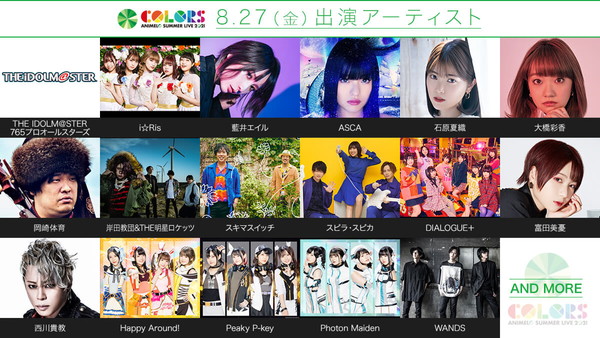 THE IDOLM@STER 765プロオールスターズ/i☆Ris/藍井エイル/ASCA/石原夏織/大橋彩香/岡 崎体育/岸田教団&THE明星ロケッツ/スキマスイッチ/スピラ・スピカ/DIALOGUE+/富田美憂/西川 貴教/Happy Around!/Peaky P-key/Photon Maiden/WANDS 他