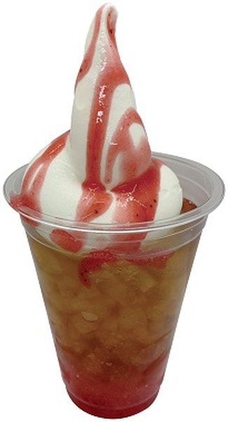 ミカサをイメージして、ストロベリー風味のアイスティーにバニラソフトクリームを浮かべた フロート。