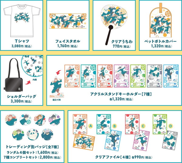 さらに、「じゅじゅフェス」のために描き下ろされたイベントビジュアルを使用したオリジナルグッズが好評発売中。TV放送でも人気な「アニメじゅじゅさんぽ」のテイストで描かれた虎杖、伏黒、釘崎、禪院(真希)、狗巻、パンダ、五条の豪華描き下ろしを使用したオリジナルグッズは、通販サイト「TOHO animaion STORE」にて発売中で、どなたでも購入可能。