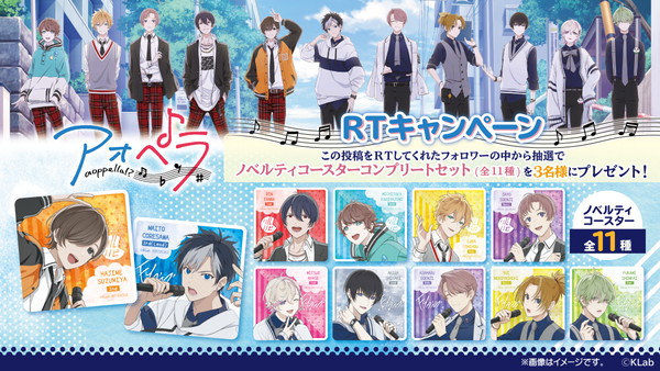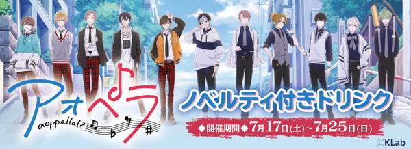 「アオペラ -aoppella!?-」はKLab株式会社が手掛ける音楽原作プロジェクト。この度GENDA SEGA Entertainmentの運営する「セガのお店」全13店舗にて、アオペラのノベルティー付きドリンクを期間限定にて販売。また、販売を記念したキャンペーンも開催される。