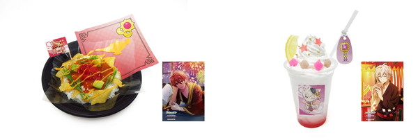 アイドルたちや作品をモチーフにしたオリジナルデザート&フード(全19種)を販売します。 対象メニューを1品お買い上げごとに、 ビジュアルカード(全17種)を1枚プレゼント!