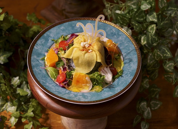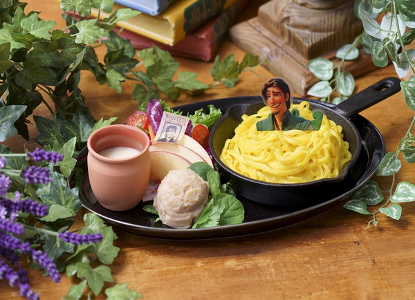 カフェメニューは、「ラプンツェル」の長い髪と衣装をイメージしたメニューや「ラプンツェル」の誕生日に見たランタンをイメージしたメニュー、『塔の上のラプンツェル』に因んだキャラクター達をモチーフにしたメニューなど、ディズニーの栄養成分に関するガイドラインに適合した塩分控えめで低糖質な、身体にやさしいヘルシーなメニューとなっている。