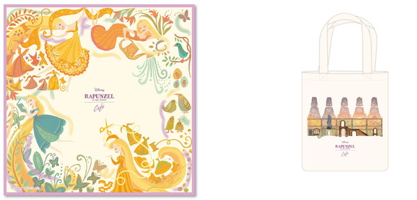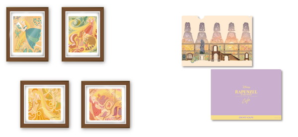 また、カフェオリジナルグッズは「ラプンツェル」が劇中で壁に描いた絵を使用した「in the tower」シリーズ、多彩な趣味を楽しんでいる「ラプンツェル」を描き起こした「ラプンツェル」シリーズ、それぞれステーショナリー、雑貨、ファッション雑貨などを展開する。