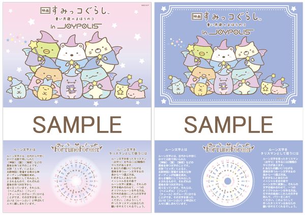 占いの結果用紙がイベント期間限定で「映画 すみっコぐらし 青い月夜のまほうのコ」仕様のデザインになります。