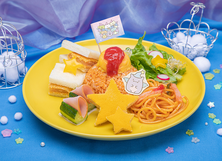 すみっコたちがふぁいぶにおすすめしたメニューが大集合! お子様ランチ風のプレートです。