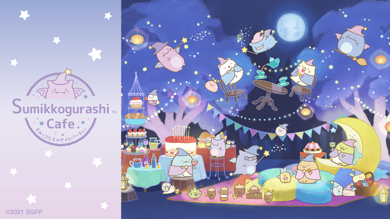 このたび、エルティーアールは、2021年11月5日、劇場アニメ第2弾『映画 すみっコぐらし 青い月夜のまほうのコ』が公開される事を記念して、「すみっコたちのナイトパーティー」をテーマにした映画にそった内容のカフェを展開してまいります。