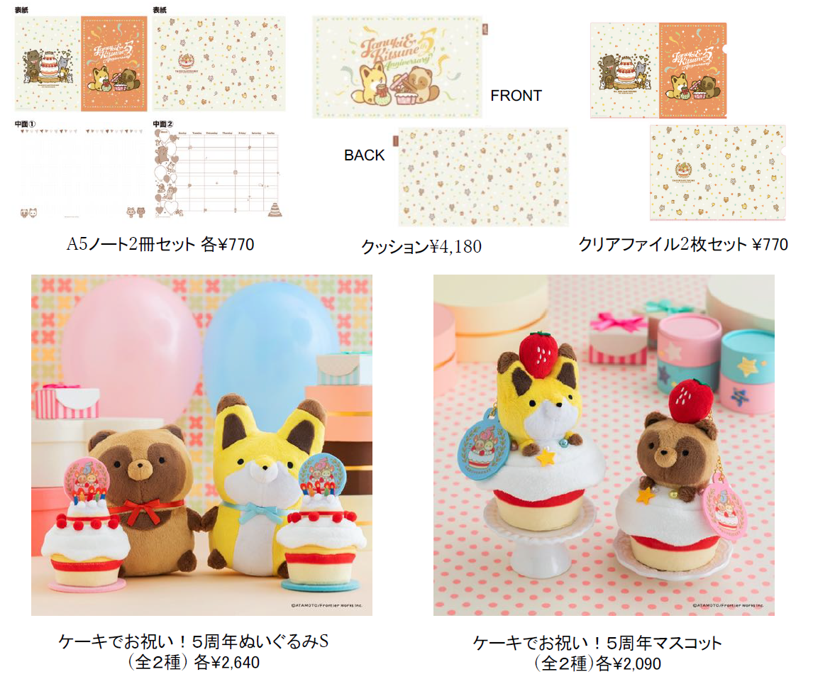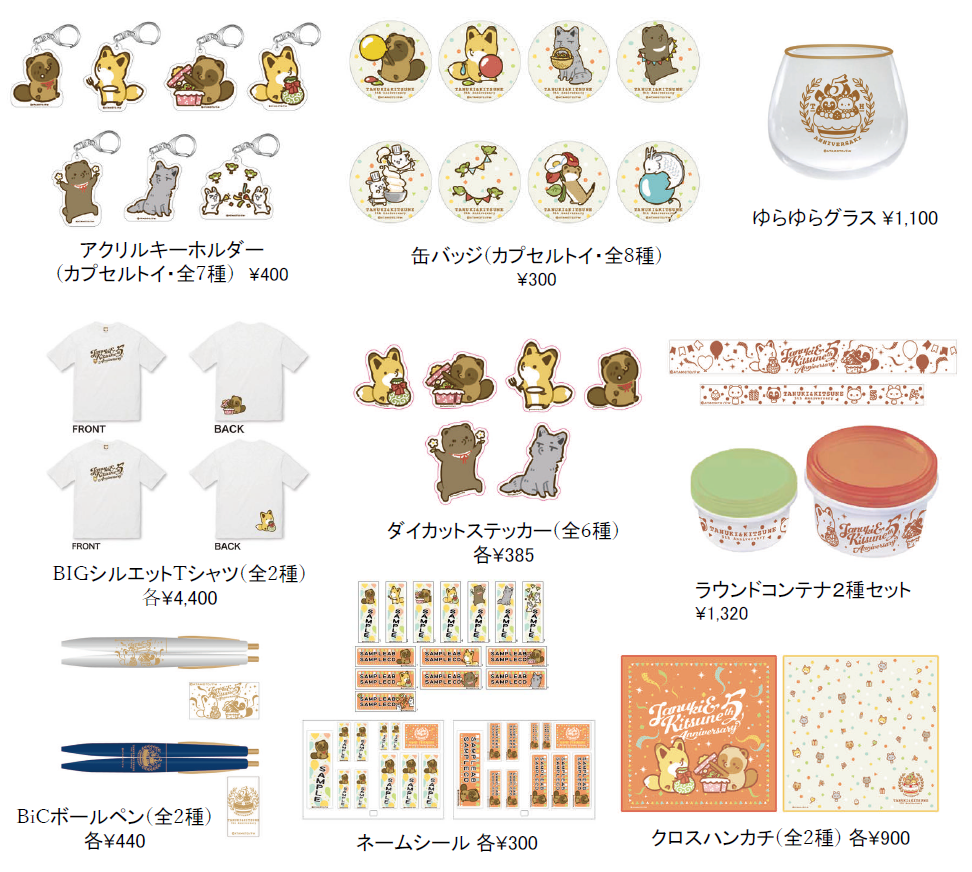 新規描き下ろしを使用したオリジナルグッズやご当地限定グッズ、さらに5周年を記念したぬいぐるみなどを販売いたします。