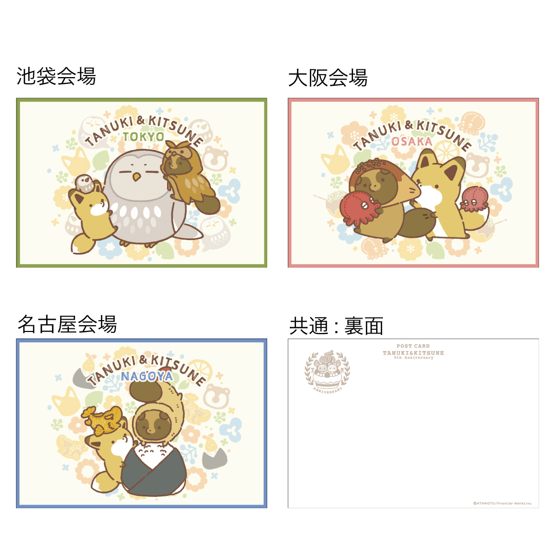 Twitterで人気の“タヌキとキツネ”5周年展の入場特典は描き下ろしのカワイイご当地ポストカード