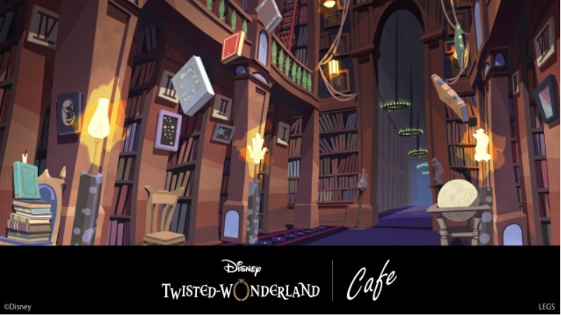 今回のテーマは、“図書室”です。『ディズニー ツイステッドワンダーランド』の「ナイトレイブンカレッジ」の世界観が広がる店内は、ゲーム内に登場する図書室をイメージした特別な空間となっています。