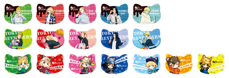 ※「タケミチのレンタルバイトゲーム」、「マイキーの唯我独尊お子様セットゲーム」、「ドラケンのシャンプーハットゲーム」、「場地の“「あの日」のお守り”くじ」、「千冬の焼きそばくじ」のC賞:ステッカー(全17種)は同一の景品です。