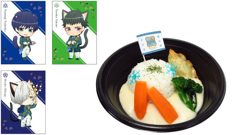 コラボ限定イラストを使用したオリジナルグッズを販売します。『A3!』関連商品を1会計につき税込3,000円お買い上げごとに、お好きな絵柄のねこ型カード(全24種)を1枚プレゼント!