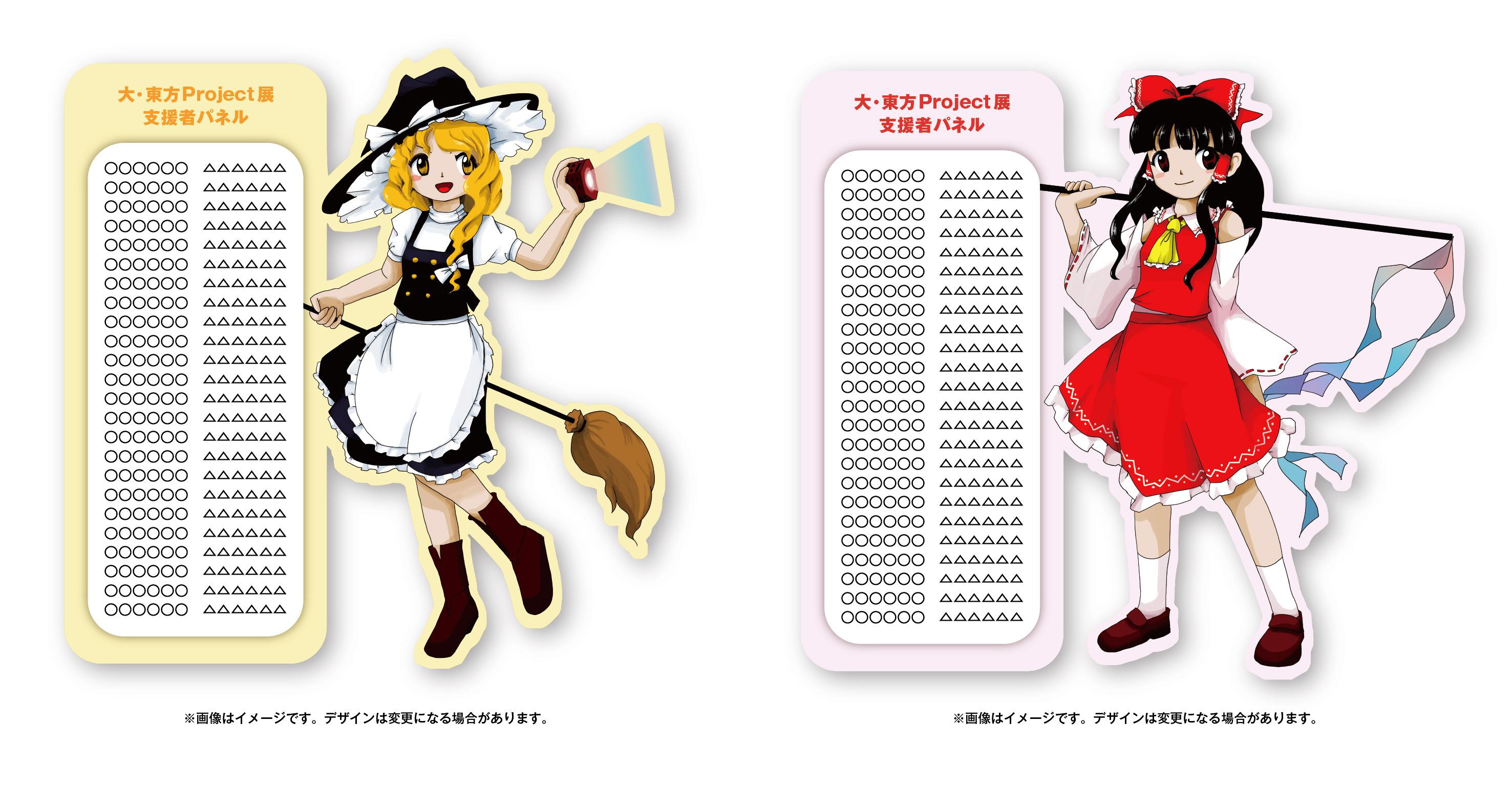 “大・東方Project展”の開催にあたり、CAMPFIREにてクラウドファンディングを開始。リターンとして企画展内に展示される“霊夢・魔理沙パネル”にハンドルネームの名入れが可能です。
