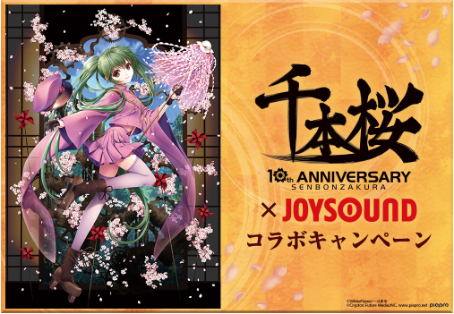 JOYSOUNDでは、いまやカラオケの定番曲としても定着している『千本桜』の10周年を記念し、イラストレータ-:一斗まるさんと黒うささんの直筆サイン入り千本桜10周年×JOYSOUNDオリジナルボードなど、豪華賞品が当たる“千本桜10周年×JOYSOUNDコラボキャンペーン”を、本日3月25日よりスタートします。