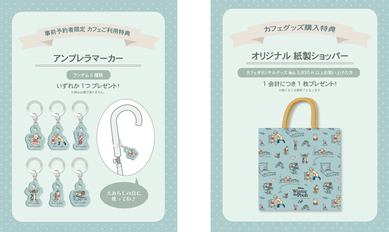 また、『プーさんと大あらし』をコンセプトにした“くまのプーさん”と森の仲間たちのオリジナルアートをくすみブルーの総柄にして、カフェオリジナルグッズや特典に落とし込みました。今年のゴールデンウィークは、一味違った雰囲気の“くまのプーさん”カフェで、ゆっくりと流れる癒しの時間をお楽しみください。