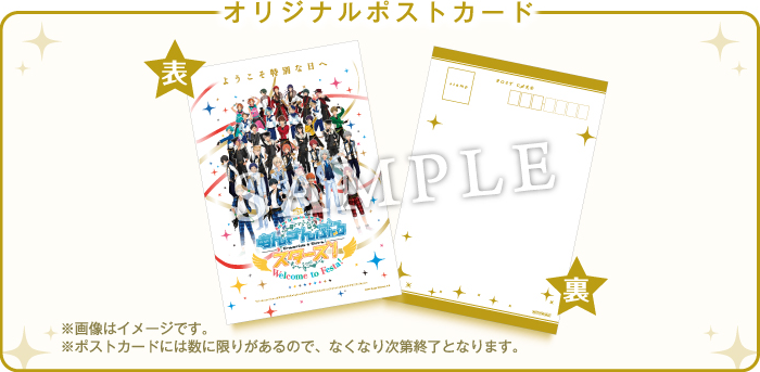 『リリース1周年記念イベント あんさんぶるスターズ! Welcome to Festa!』開催を記念して、オリジナルポストカードがもらえる連動企画の実施が決定! 期間中、各会場に設置されている専用チラシをご持参のうえ、対象のアニメイトで『あんさんぶるスターズ!』関連商品を1,000円以上購入の際にオリジナルポストカードを1枚プレゼントします。