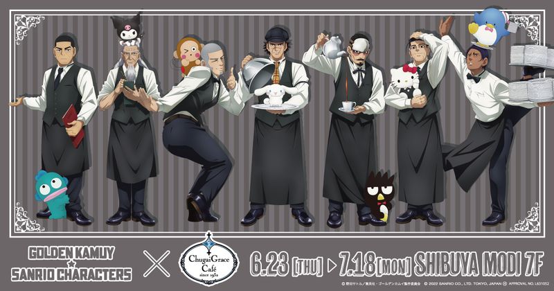 中外鉱業コンテンツ部は、“『ゴールデンカムイ×サンリオキャラクターズ』×Chugai Grace Cafe”を開催します。当イベントは2022年6月23日~7月18日まで渋谷モディ7F Chugai Grace Cafeにて開催となります。