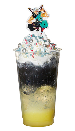 “竹炭”を加えたチャコールドリンク仕立てのレモネード。ホイップクリームにド派手なトッピングで宇髄天元をイメージ! パチパチキャンディーをちりばめて、“音”も楽しめるドリンクです。