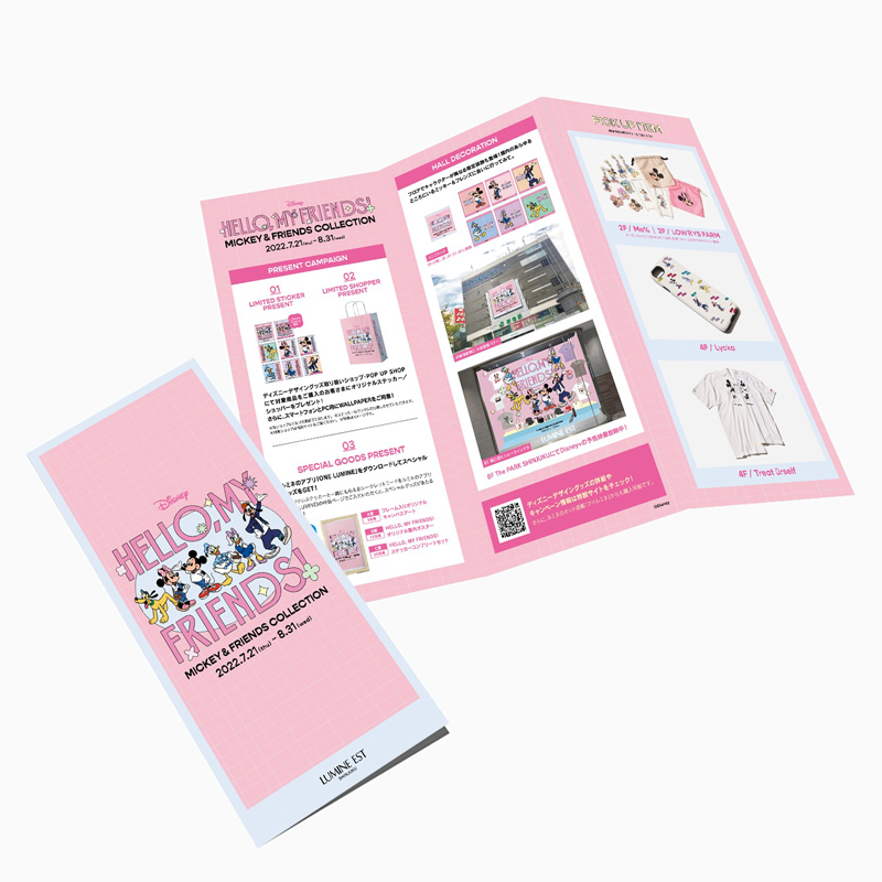 ルミネエスト新宿で開催する“HELLO, MY FRIENDS!”の詳細がよくわかるフリーペーパーを配布いたします。ディズニー商品取り扱いショップやプレゼントキャンペーンなど知りたい情報が盛りだくさん。是非ゲットして館内を巡ってみてください。
