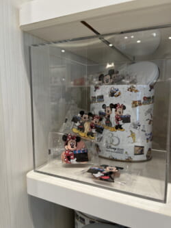 日本のディズニーストアオープン以降に登場した、懐かしのアイテムを展示します。1992年の第1号店グランドオープンを記念して販売したカチンコを持ったキャストコスチュームのミッキーをデザインしたプレート&マグカップをはじめ、5周年、10周年といった節目ごとの周年記念アイテムなどディズニーストアのこれまでの歩みを感じていただける展示になっていました。