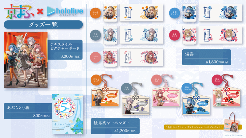 2022年9月17日~18日に開催される“京都国際マンガ・アニメフェア2022”にて、VTuberグループ“ホロライブ”所属の“不知火フレア”、“尾丸ポルカ”、“さくらみこ”、“星街すいせい”、“白銀ノエル”による“不知火建設社員旅行 in 京都””をコンセプトとした記念商品を多数展開いたします。