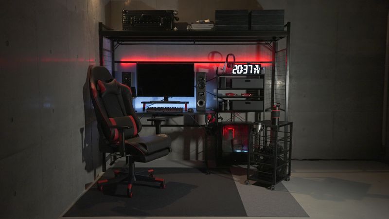 ニトリのハンガーシェルフやハイベッドの下にゲーミング家具を配置すれば、スペースを有効活用しながらゲームに集中して楽しめる空間を作っていただけます。
