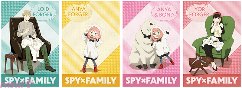 本フェアでは、期間中『SPY×FAMILY』関連のキャラクターグッズ・書籍を購入・予約内金1,100円(税込)毎、またはBlu-ray・DVDを購入・予約(内金1,100円〈税込〉以上必須)1点毎に、特典“イラストカード(全4種)”をランダムで1枚プレゼントいたします。特典には、パーカーをテーマにしたロイド、アーニャ、ヨル、ボンドの描き下ろしイラストを使用しています。