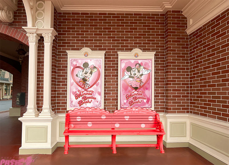 東京ディズニーランドのワールドバザールと、東京ディズニーシーのアメリカンウォーターフロントでは、壁面などにミニーマウスが描かれたデコレーションを展開します。